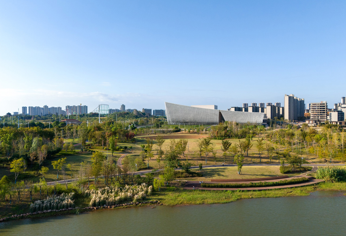 The design comprises three separate functional components: a 1,600-seat opera hall, a 450-seat multipurpose hall, and an art education centre with classroom, rehearsal and exhibition spaces. These are linked by an inviting, naturally lit central passage that traverses the building, linking it to Jiulong Lake park and the future commercial district.
