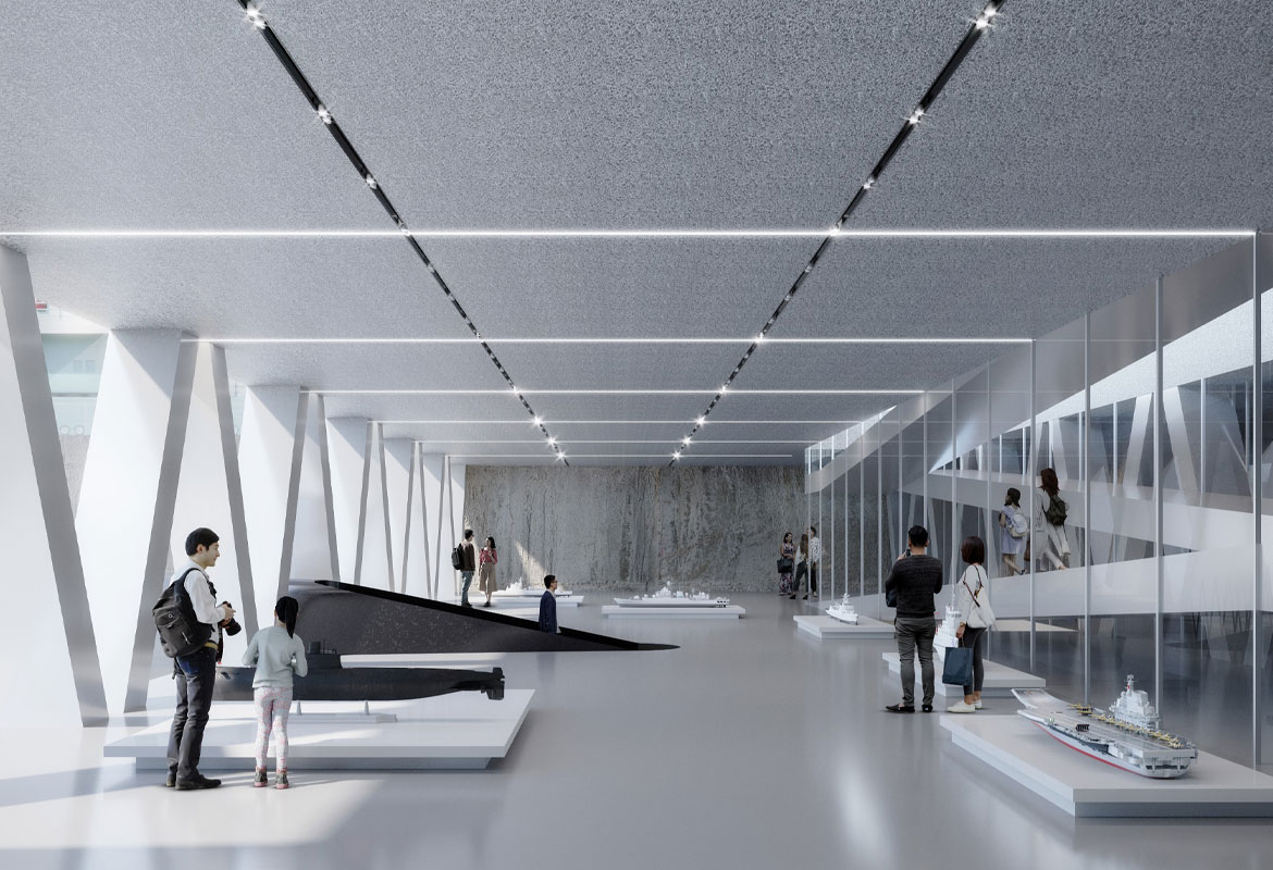 The new museum, administratively part of the China Maritime Museum in Shanghai, will form an integral part of this chain of cultural venues and historic riverfront landscape. PES-Architects’ design seeks to preserve the industrial dock and showcase the museum submarine with a subtle yet distinctive landmark building that honours the heritage of the site.