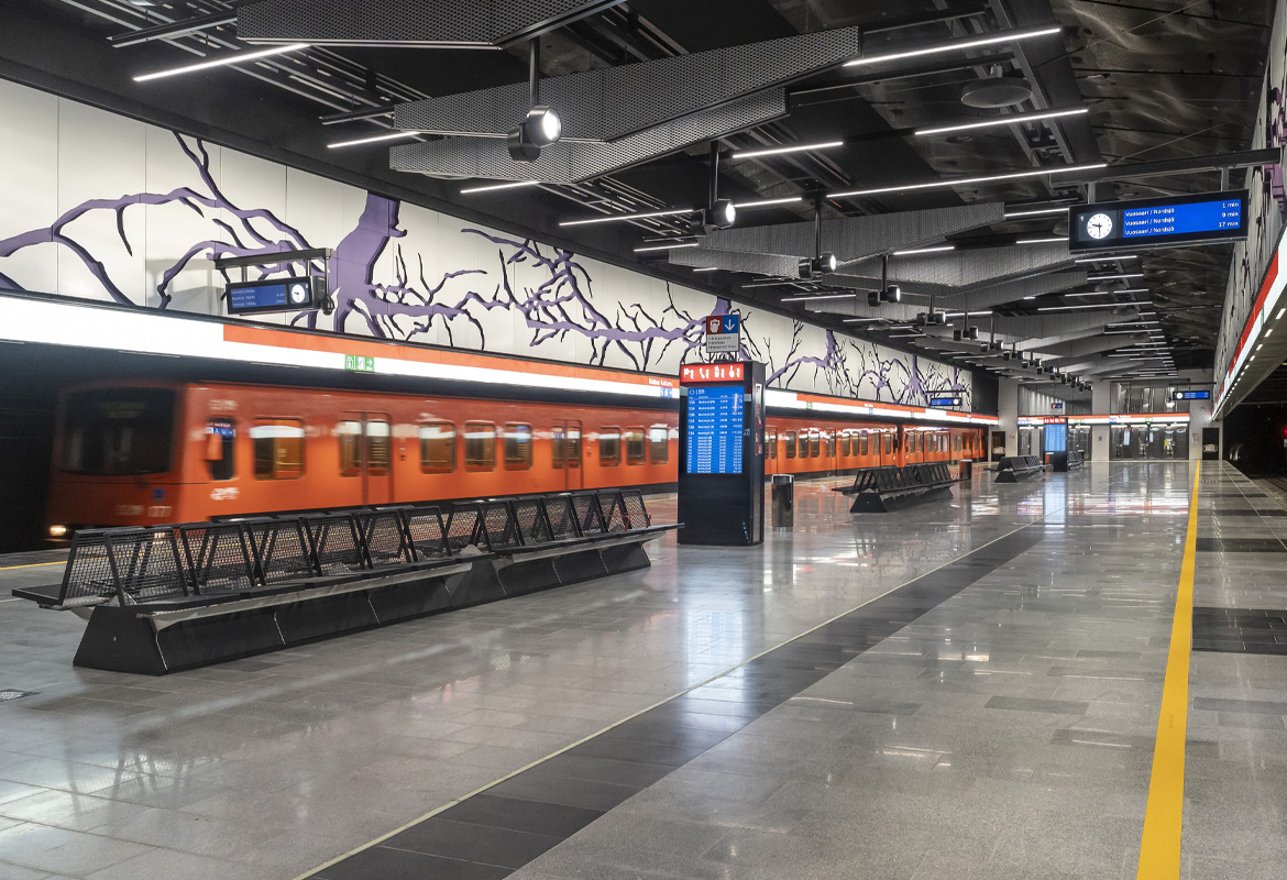 In both areas, the new metro line link kicks off major urban development in the vicinity. The metro stations are not just transport hubs, but also recognisable landmarks in the rapidly developing and expanding new neighbourhoods. Each station has a distinctive identity encompassing the architecture and design details of both the station platforms and entrance buildings.