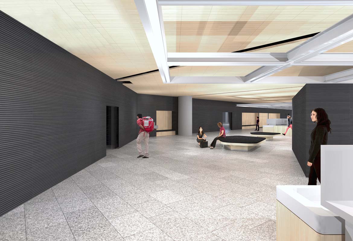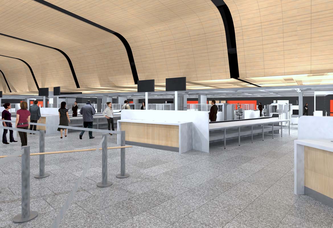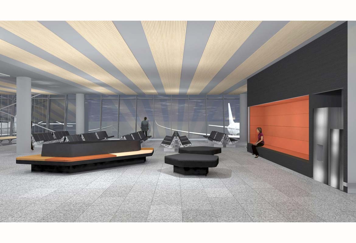In terms of architecture the most significant element will be a central plaza after the security control, which serves as a point of orientation for the passenger and is clearly visible from outside of the terminal thanks to a lantern rising above the other parts of the roof. Wooden interiors will be a major element inside the terminal, bringing a local twist into the transfer passenger’s experience.
