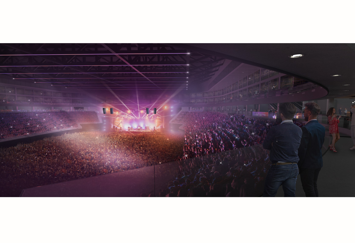 The adjacent existing ice hockey arena (Nordis), dating from 1966, will be converted into a mid-sized arena for sports and other events, seating 5,000. It will connect to the new arena and other sports and recreation facilities at the underground level.