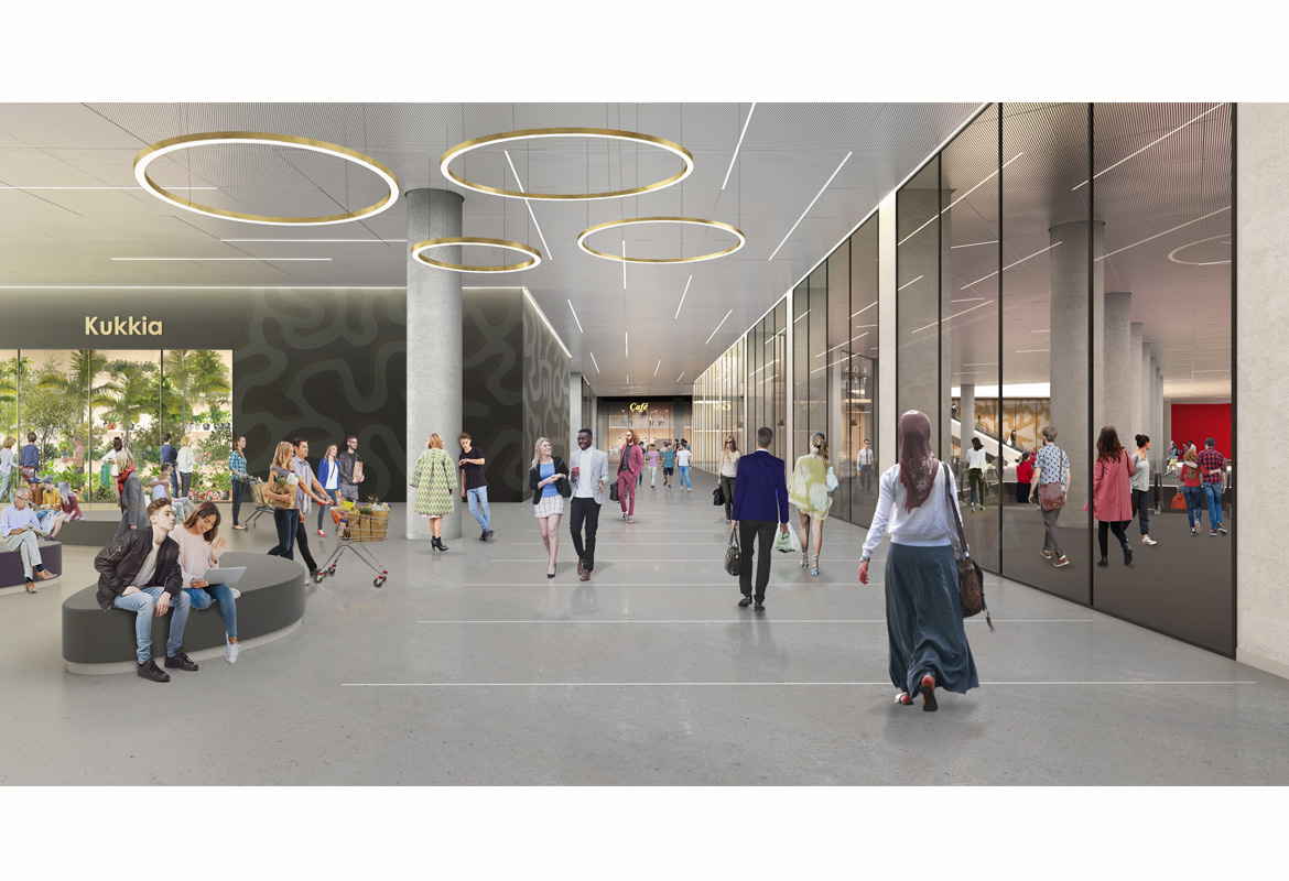 The above-ground building, designed by B&M Architects on the basis of an architecture competition arranged in 2016, will contain business and retail premises, hotel facilities and apartments. The garden square and other outdoor spaces will create new city routes connecting the surrounding areas.