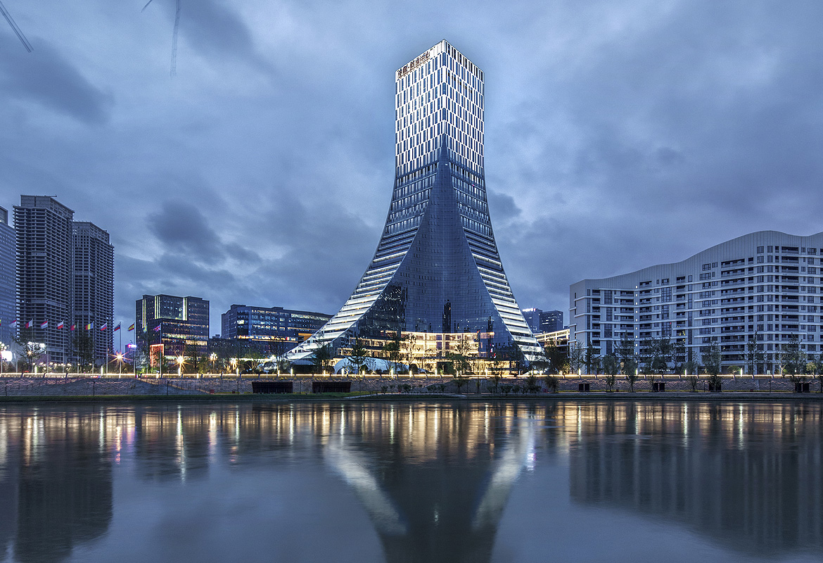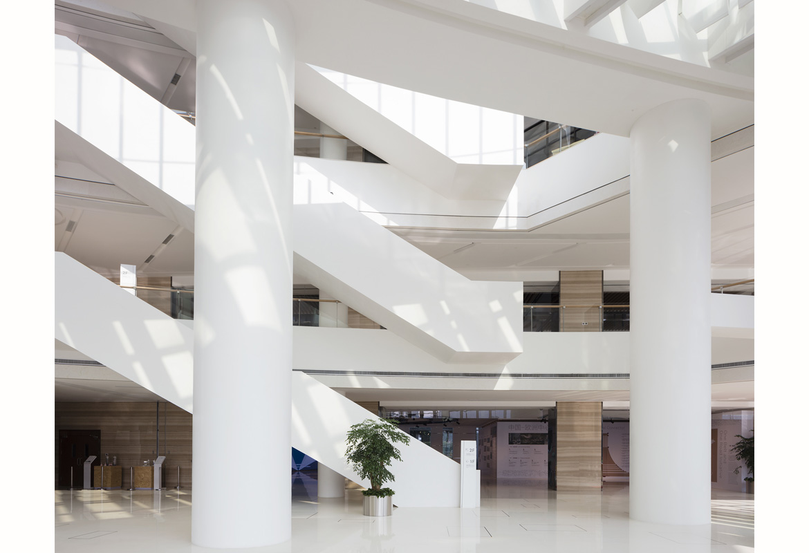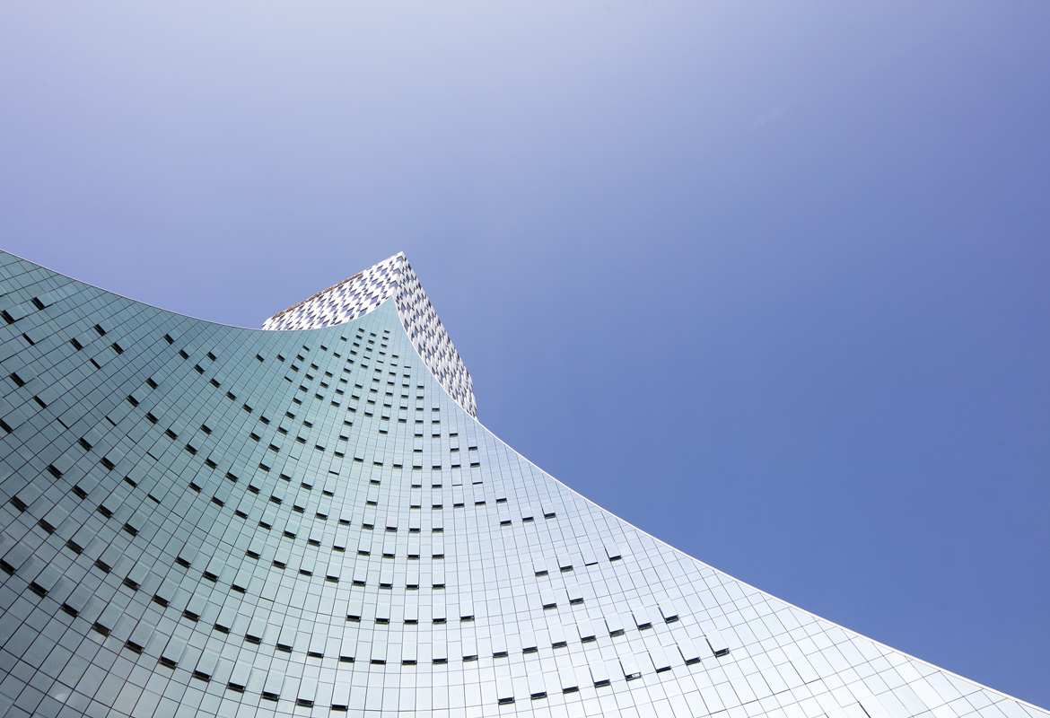 The form of the building is evocative of a white mountain with garden terraces, rising from the water up towards the sky. Hence, the building was named Yun Duan, “Above the clouds”.