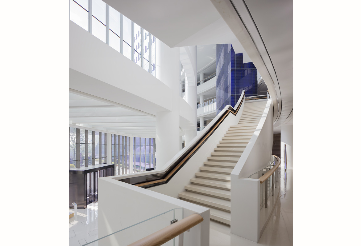 Underground premises provide parking for 3,000 cars and a connection to the metro station. The underground spaces were originally planned to accommodate a spa and gym, but the client later decided to replace these with a concert hall seating 900. This was designed by CSWADI partly under and partly adjacent to the building.