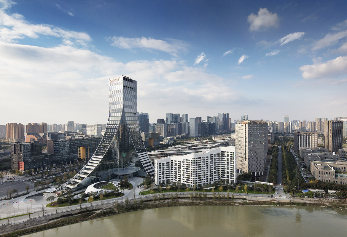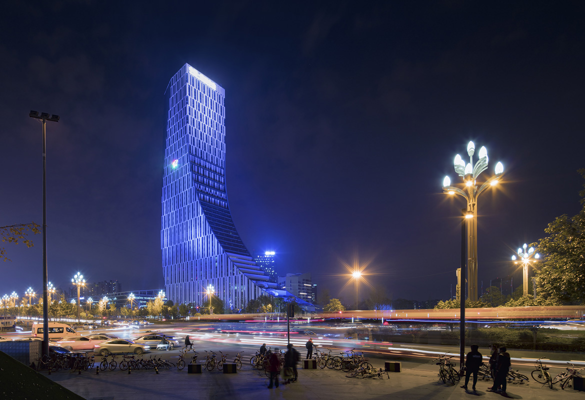 Icon Yunduan Tower is a 192-metre-high hybrid building located in a high-tech zone on the outskirts of the city of Chengdu, China. The aim of the project was to create a landmark visible on entering the city as well as a focal point for the earlier building phases of the area. The project is based on a winning entry in an invited architecture competition in 2009.