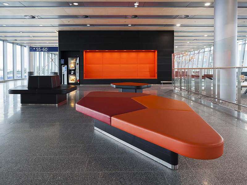 A new pre-boarding lounge concept was created for the South Pier. The lounges are furnished with Finnish design classics.