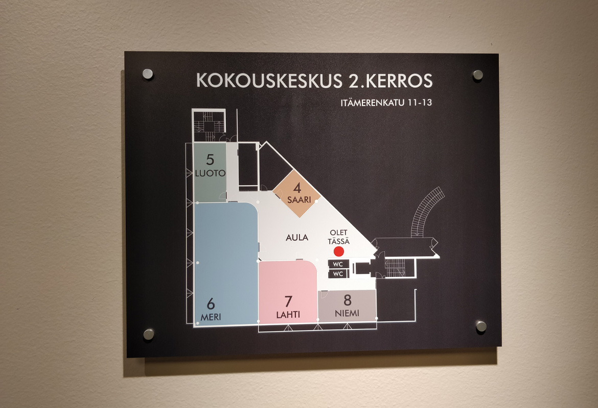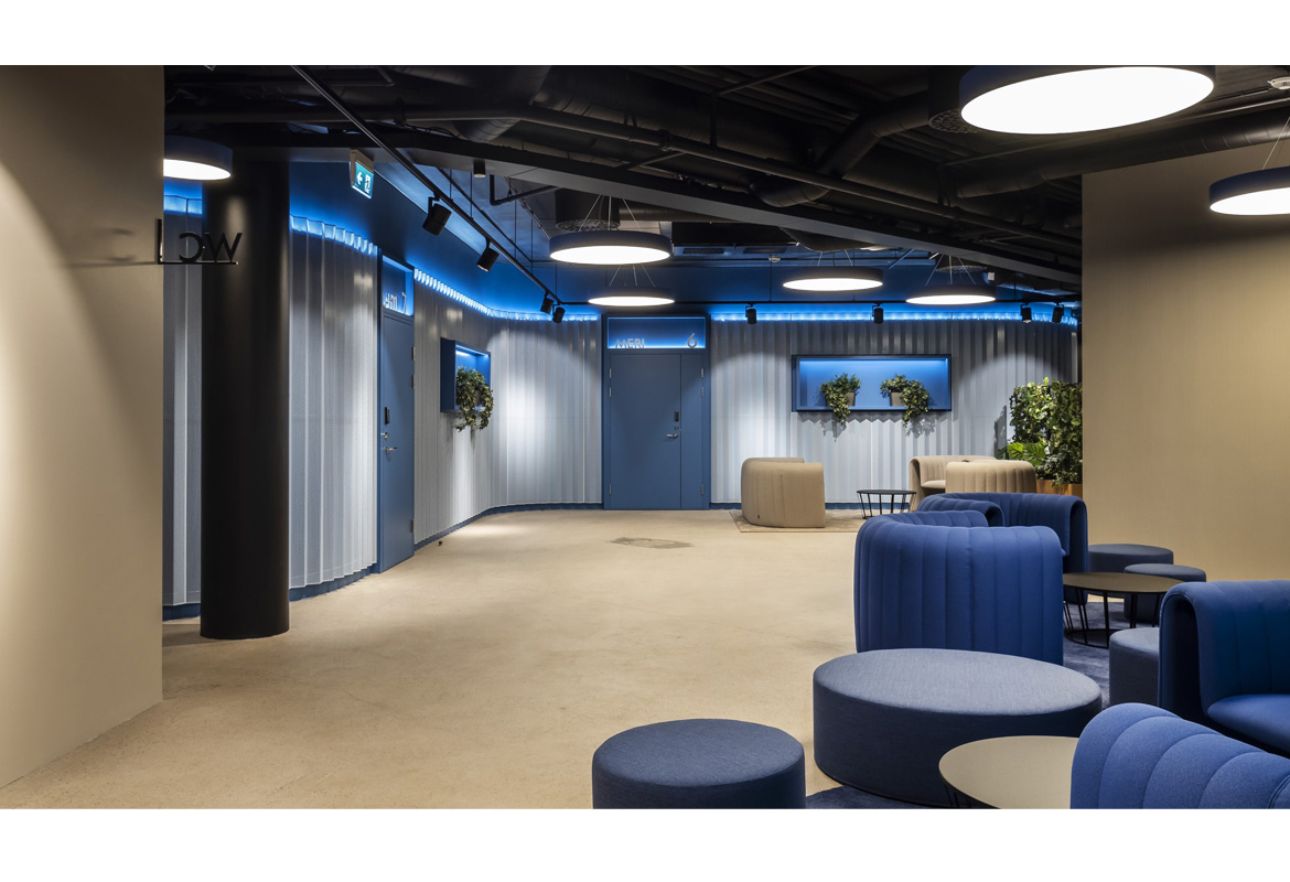 Our task was to redesign and refurbish the large but bare lobby of this office building, originally designed by Tuomo Siitonen Architects, into a smart and business-like entrance for financial and high-tech companies. The design area also included waiting lounges, toilets and a conference centre connected to the lobby.