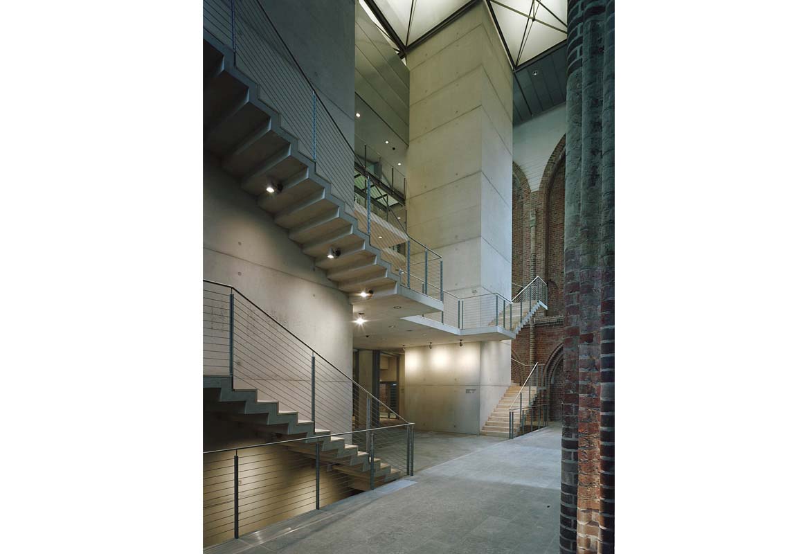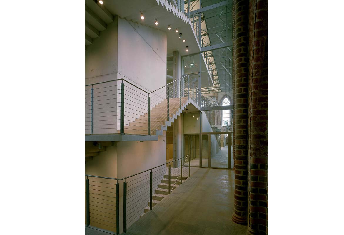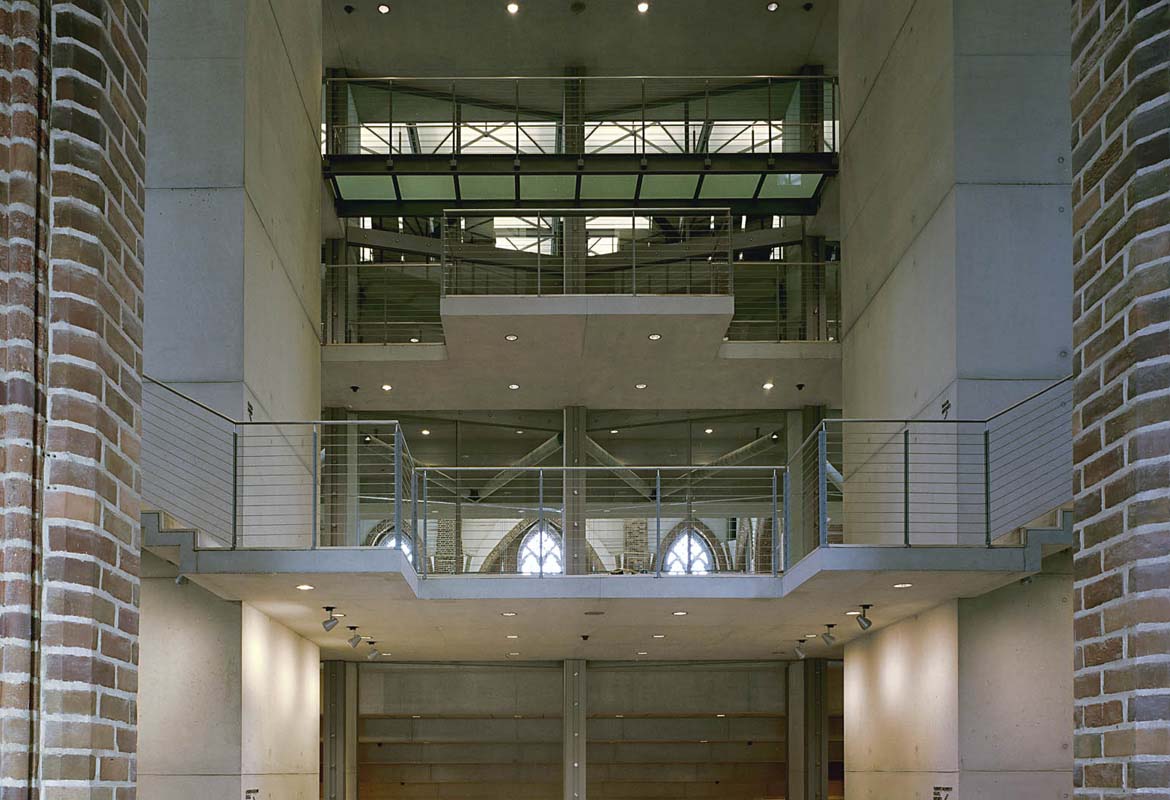 The main entrance Concourse Lobby is an open space that can be used for cultural activities. The “Mushroom Columns” host elevators and ventilation equipment. “Sky Blossoms” in the lobby ceiling introduce daylight and create a connection between the ground level and the roof terrace above.