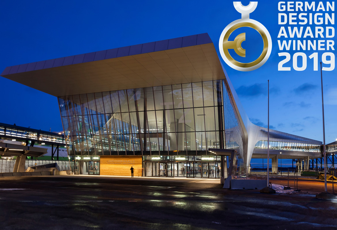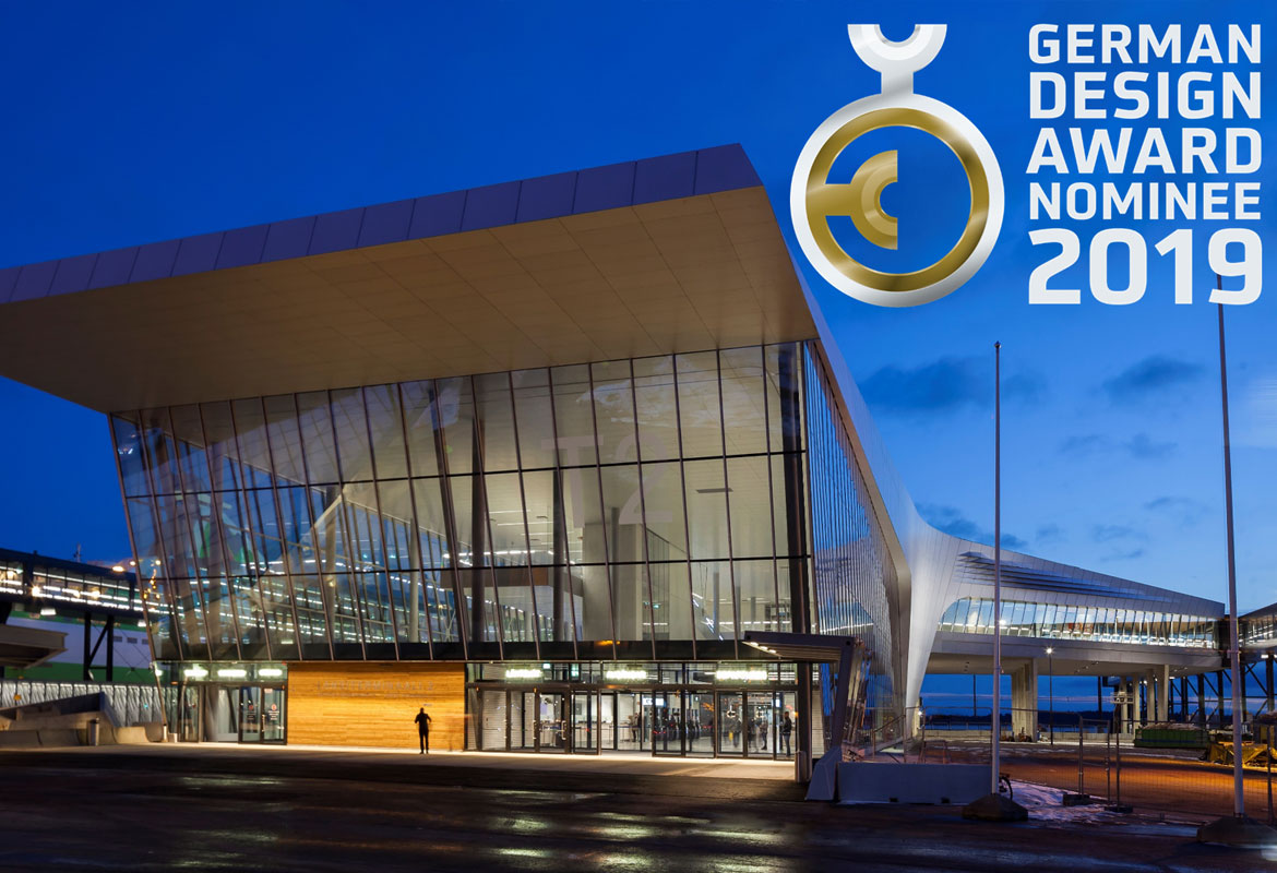 We are pleased to share that West Terminal 2 has been nominated for the German Design Award 2019. The new ferry terminal in Helsinki West Harbour was nominated by the German Design Council, the expert for brand and design in Germany. The nominated projects will be assessed by an international expert jury in early August 2018. The German Design Award seeks to discover, present, and honour unique trends in design. Awards are granted to projects that represent pioneering contributions to the German and international design landscape.