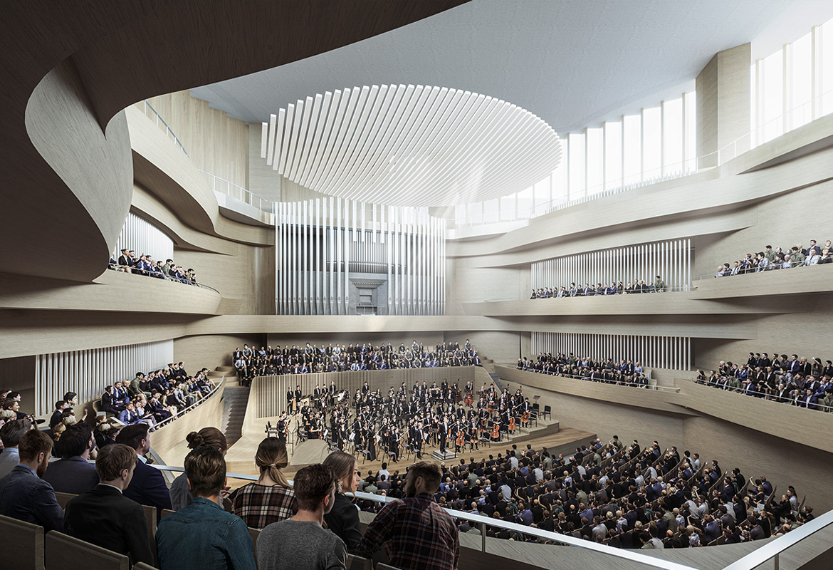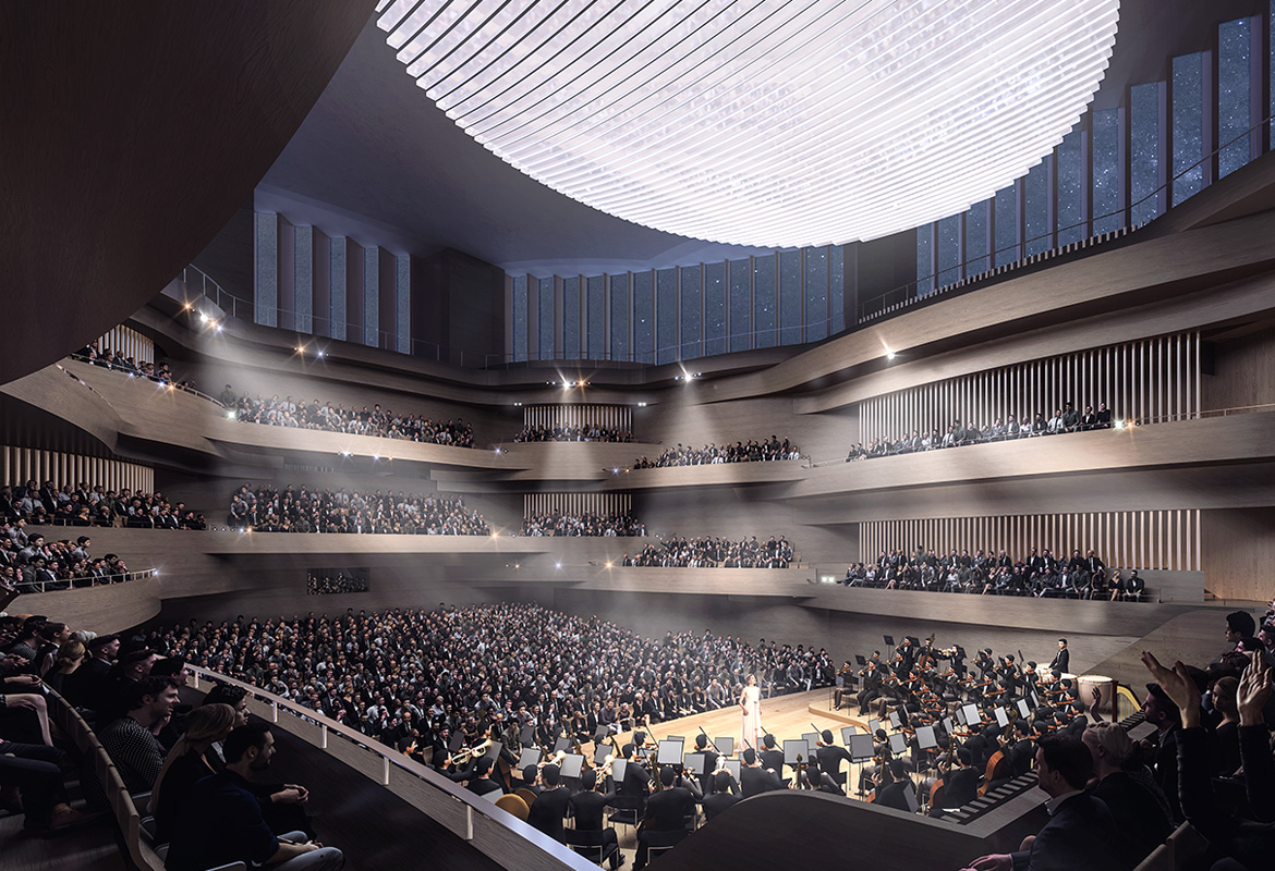 The concert hall will feature world-class acoustics in a classic shoebox auditorium that envelops the audience and orchestra in music. The multifunctional hall is designed to flexibly accommodate a variety of uses.