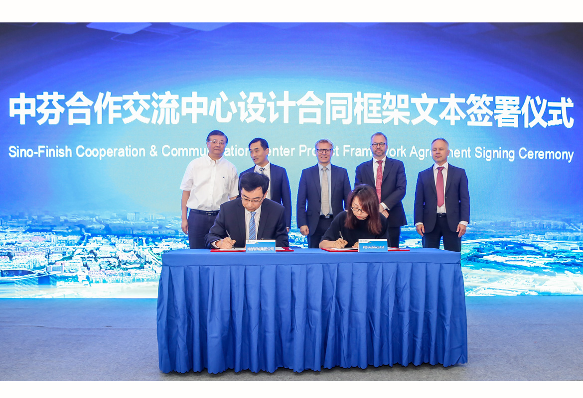 PES-Architects Shanghai office General Manager Ms.Lailinli and Nanjing South New Town Development Group Deputy General Manager Mr Yu Xin signed a design contract for the Sino-Finnish Co-operation and Exchange Centre in Nanjing on 14 September 2018. The Finnish Minister of the Environment, Energy and Housing, Mr. Kimmo Tiilikainen, also took part in the signing ceremony on his visit to Nanjing. The construction of the project is scheduled to begin by spring 2019.