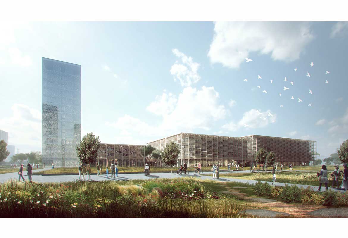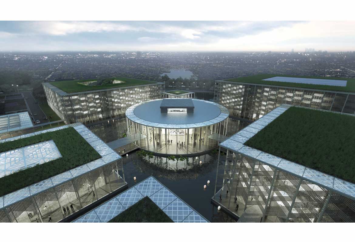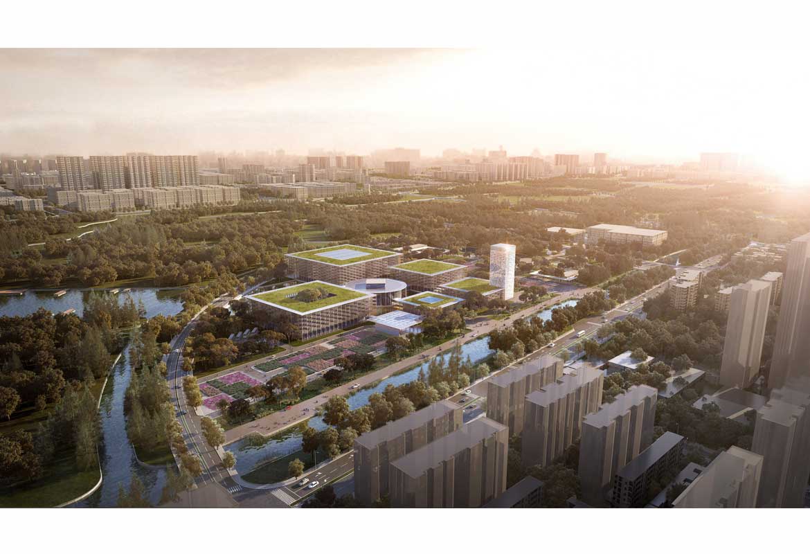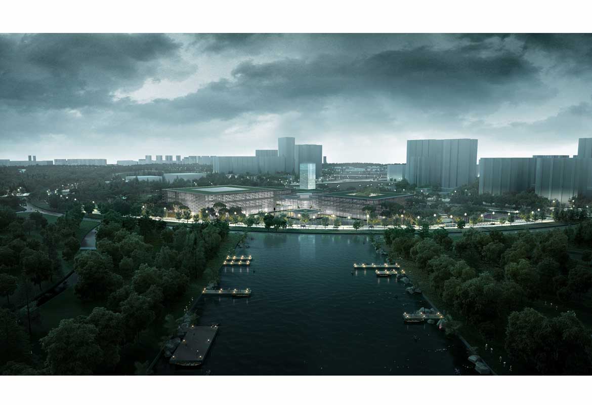The competition was organised by the Fengxian New Town management committee as an international invited competition. In addition to PES-Architects, competitors included Arata Isozaki Architects (Japan), Studios Architects (USA), Woods Bagot (Australia), Kris Yao Artech (Taiwan) and L’Atelier Frédéric Rolland (France).