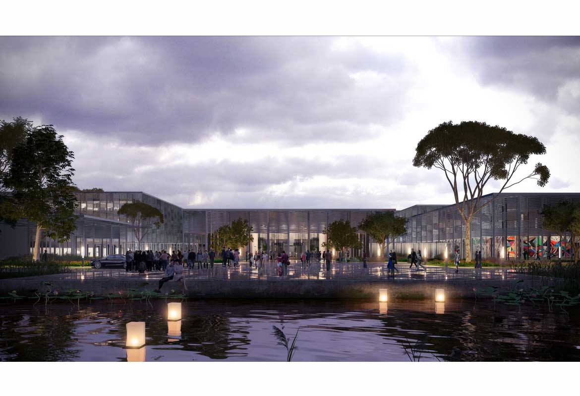 The proposal does not follow the typical organisation of a theatre but instead breaks up the functions into a series of flexible pavilions. This creates a relationship between the visitors and the spaces that allows for a meandering manner of edification. The central pavilion, together with its multifunctional theme theatre, creates the functional, circulatory and social focal point of the art centre. It is framed by programmatic ensembles; the grand theatre, multifunction theatre, restaurant, community centre and exhibitions.