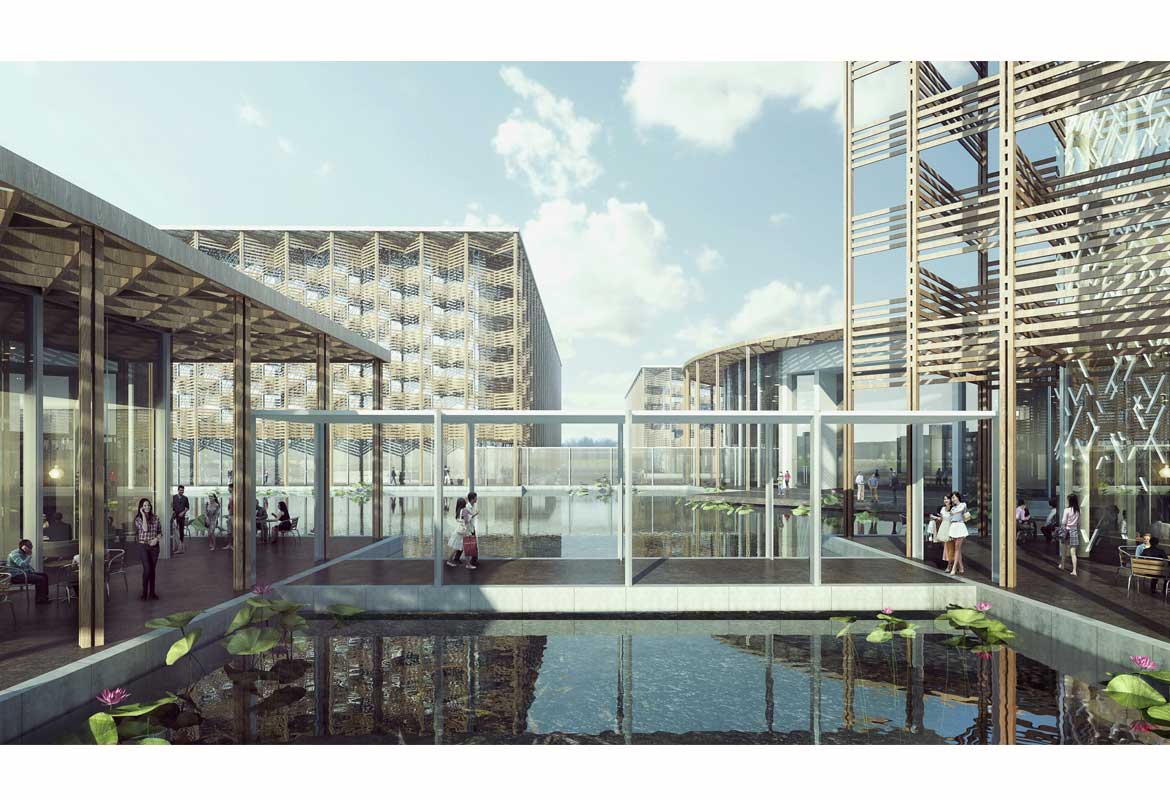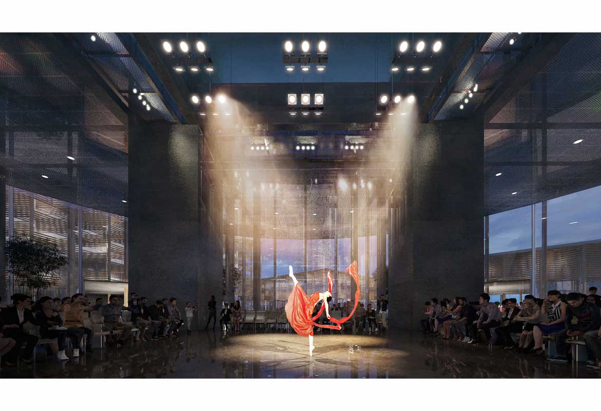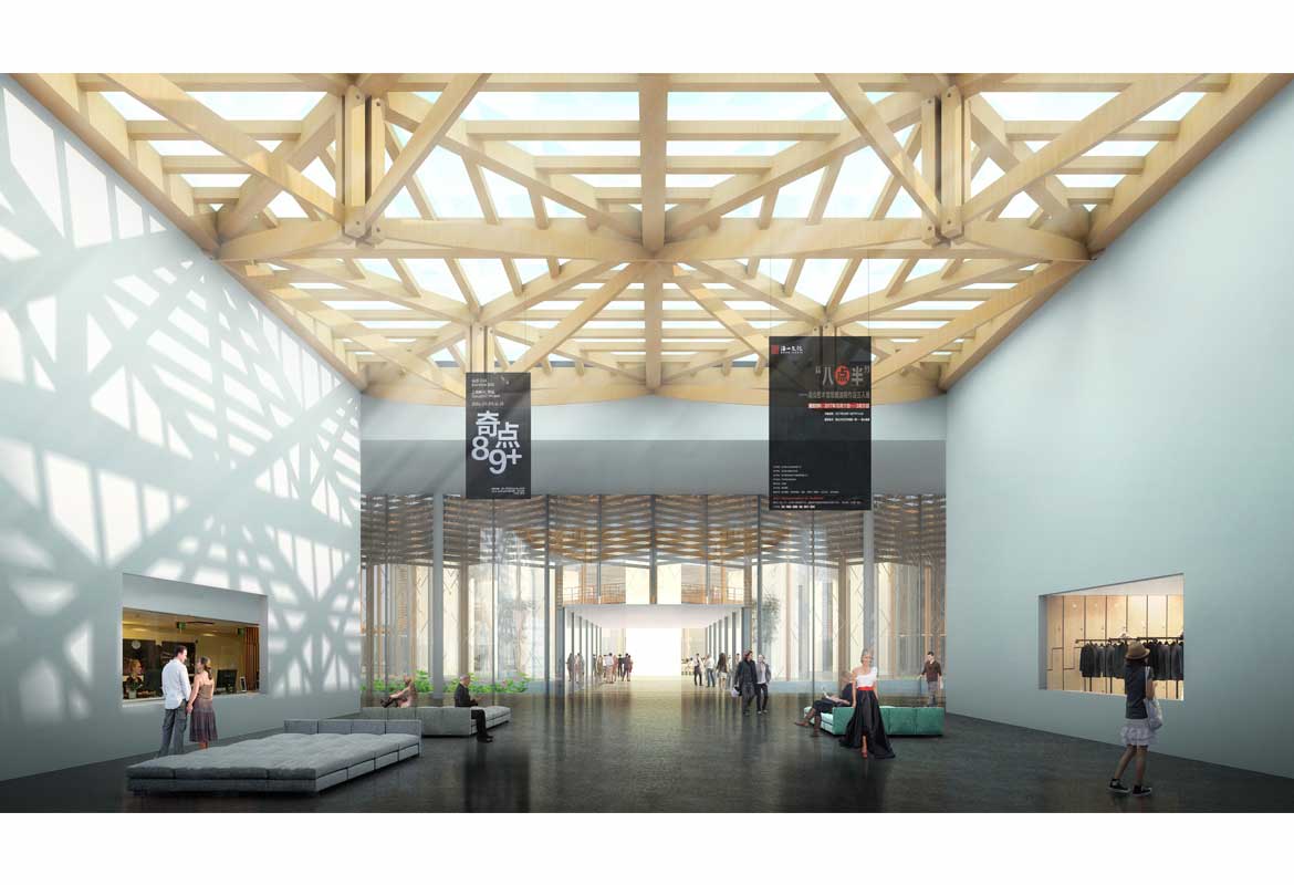 This project is a demonstration in architectural form of one of the key visions for the Nine Trees Art Centre: the close integration of community, theatre and landscape. Situated at the border of a beautiful forest and the urban core of Fengxian, the Shanghai Nine Trees Art Centre forms a unique relation with its environs. The proposal creates a ‘cultural campus’, a series of communal living rooms providing a framework for the creation of intellectual, economic and social value. Blurring the boundary between city and landscape, the project programme is broken into several pavilions, carefully placed in the scenery to preserve the spirit of the natural site. Nestled among the planted landscape, away from the bustle of the growing metropolis, the art centre is a place to contemplate both natural and man-made beauty.
