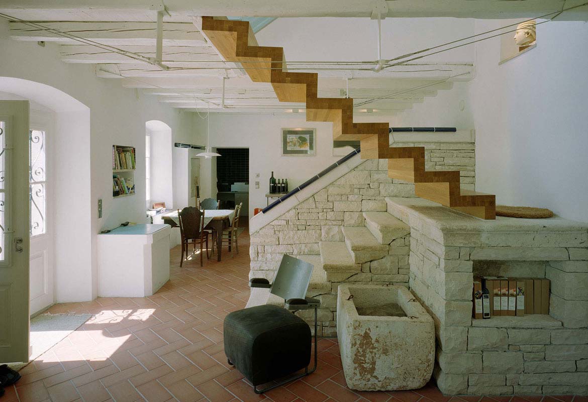 The house retains the original solid stone walls, coated with new plastering and traditional limewash, vapno. The window frames of Istrian stone are also original and were fitted with new window shutters of the traditional skure type.