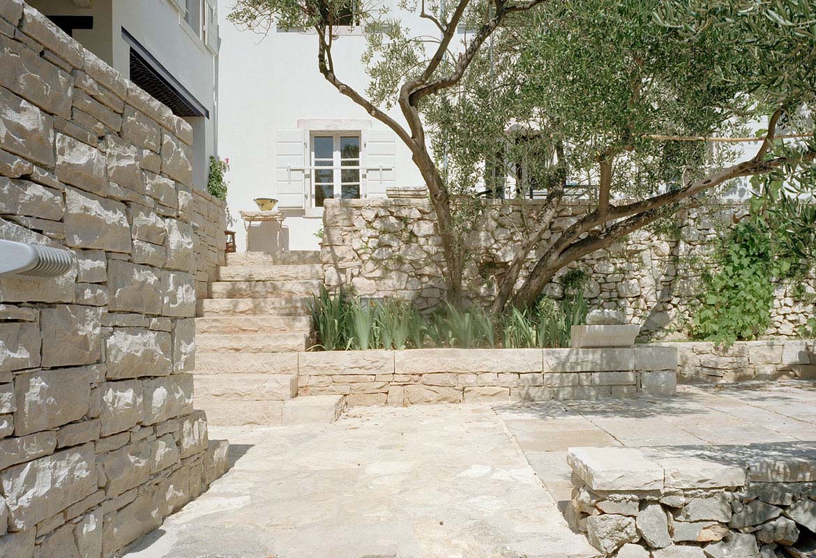 Venice was built with Istrian limestone, and this is also the material used for window and door frames (erte) in old Unije houses. I decided to continue this tradition and transported large quantities of stones from Istria, using this noble material for all new constructions (terraces and the konoba utility building).