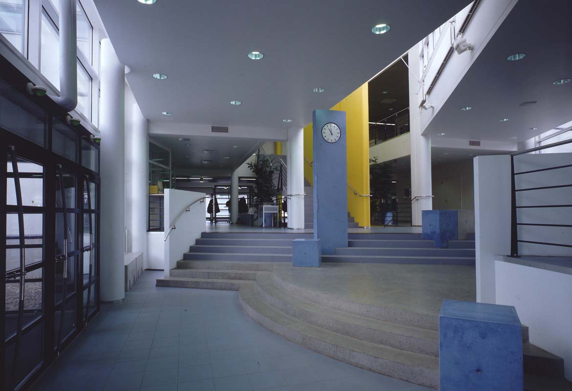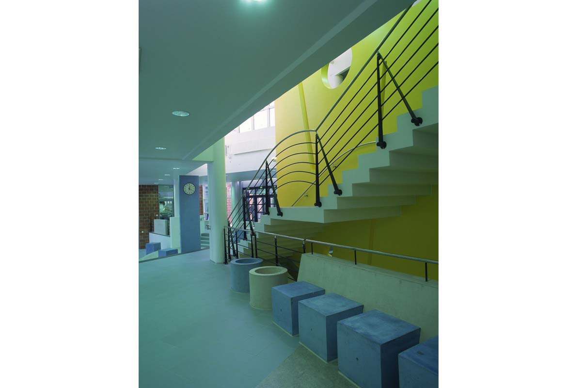 In 1998 PES-Architects was asked to design an extension to the class room facilities. The new extension contained additional class rooms, workshops, and computer suite, offices and a sloping auditorium. The new building is connected by a second floor bridge and has its own main entrance and 2 storey lobby.