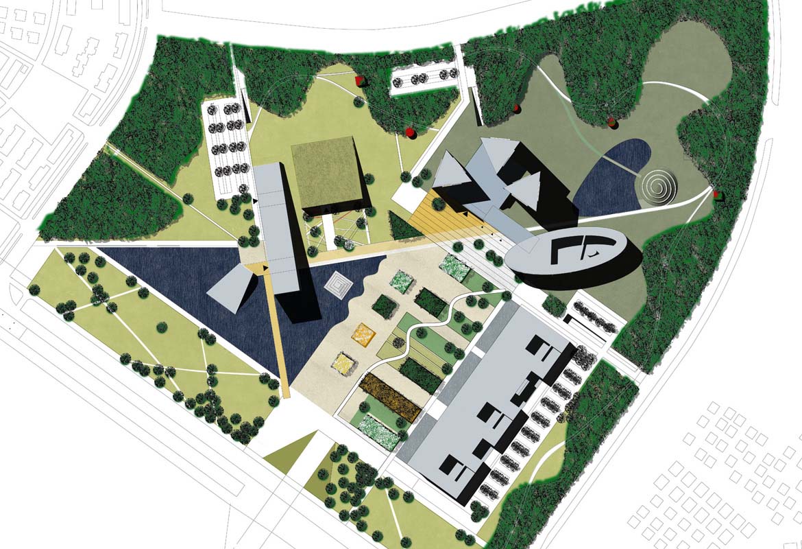 The importance of the Administration Centre is emphasized by opening up the 220 m long ”Grand Arcade”, to the park creating an inviting and easy way for people to visit the Administration Building.