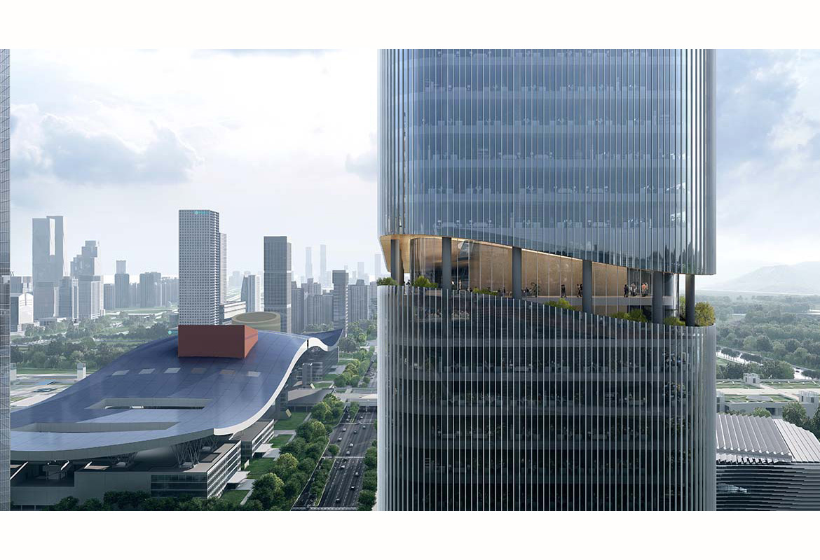 The underlying design principle of our proposal for the Wumart Office Tower calls for a highly economical and functional green office building design, where the building becomes a platform for the creation of an interesting, inspiring and forward-looking company image integrated with optimised and performative architectural solutions and ease of construction. The tower would be a landmark building in Shenzhen’s central Futian District and along the green passage.